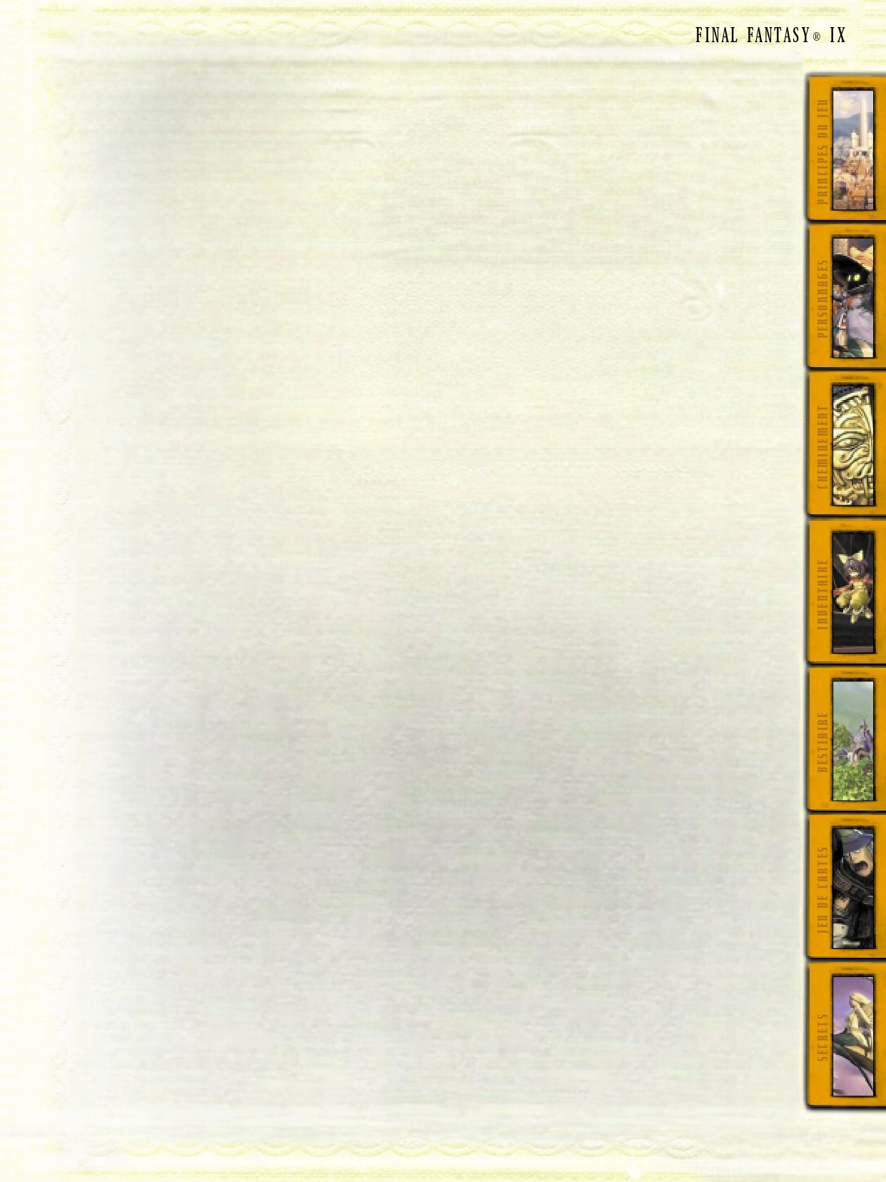 Cette section est une version papier des contenus trouvable sur le site original PlayOnline.com de l'année 2000. Son but initial était d'accompagner le présent ouvrage FINAL FANTASY IX LE GUIDE OFFICIEL en version numérique. Tout le long du guide, vous pouvez trouvez des Mots de passe PlayOnline pour vous offrir plus de secrets. Vous deviez alors entrer le code sur le site pour que le contenu vous soit alors accessible.